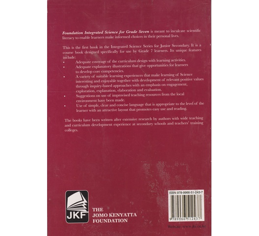 Foundation Integrated Science for Grade Seven is meant to inculcate scientific literacy to enable learners make informed choices in their personal lives.