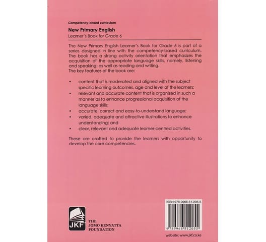The New Primary English Learner’s Book for Grade 6 is part of a series designed in line with the competency-based curriculum. The book has a strong activity orientation that emphasizes the acquisition of the appropriate language skills, namely, listening and speaking; as well as reading and writing.
