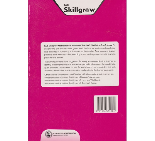 KLB Visionary Mathematical Activities Teacher’s Guide for Pre-Primary One is a guide developed by a team of experts with long standing experience in teaching and curriculum development.