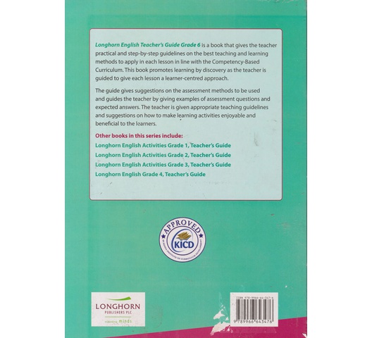 Longhorn English Teacher’s Guide Grade 6 is a book that gives the teacher practical and step-by-step guidelines on the best teaching and learning methods to apply in each lesson in line with the Competency-Based Curriculum. This book promotes learning by discovery as the teacher is guided to give each lesson a learner-centred approach.