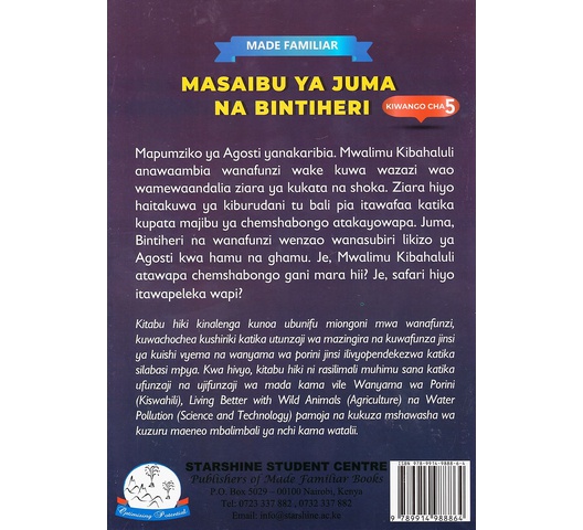 Mapumziko ya Agosti yanakaribia. Mwalimu Kibahaluli anawaambia wanafunzi wake kuwa wazazi wao wamewaandalia ziara ya kukata na shoka. Ziara hiyo haitakuwa ya kiburudani tu bali pia itawafaa katika kupata majibu ya chemshabongo atakayowapa. Juma, Bintiheri na wanafunzi wenzao wanasubiri likizo ya Agosti kwa hamu na ghamu. Je, Mwalimu Kibahaluli atawapa chemshabongo gani mara hii? Je, safari hiyo itawapeleka wapi?