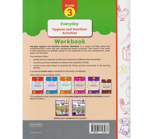 Everyday Hygiene and Nutrition Activities Workbook is a unique fun-filled series that comprehensively covers the new competency-based curriculum. Each book in the series is well-researched and skillfully written to aid acquisition of the core competencies, skills, values and attitudes.