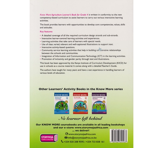 Know More Agriculture Learner’s Book for Grade 4 is written in conformity to the new competency-based curriculum to assist learners to carry out various interactive learning activities.