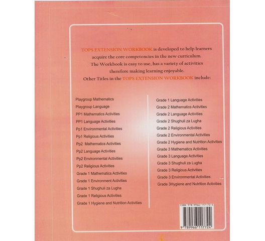 Tops Extension Mathematics is developed to help learners acquire the core competencies in the new curriculum. The Workbook is easy to use, has a variety of activities, therefore, making learning enjoyable.