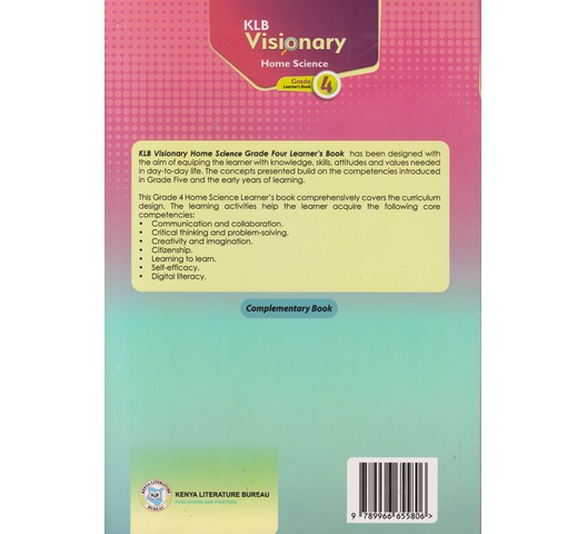 KLB Visionary Home Science Grade Four Learner’s Book has been designed with the aim of equiping the learner with knowledge, skills, attitudes and values needed in day-to-day life. The concepts presented build on the competencies introduced in Grade Five and the early years of learning.